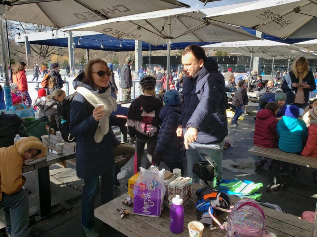Licznie przybyli goście, czyli uczniowie wraz z rodzicami do LeFrak Center at Lakeside – Prospect Park Alliance mieli okazję spróbować swoich sił w typowo zimowym sporcie, jakim jest łyżwiarstwo. Zmęczonym ale zadowolonym dzieciom przedstawiciele Rady Rodziców zafundowali organiczne batony oraz kubki z gorącą czekoladą. Wydano aż 60 kubków ze słodką zawartością, co świadczy o wysokiej frekwencji uczestników. Mamy nadzieję, że łyżwiarskie spotkania staną się tradycją naszej szkoły.