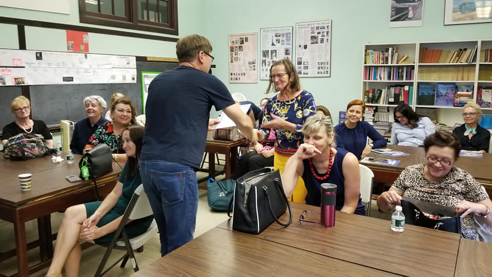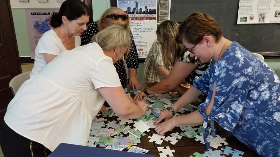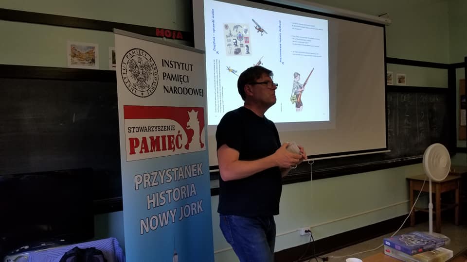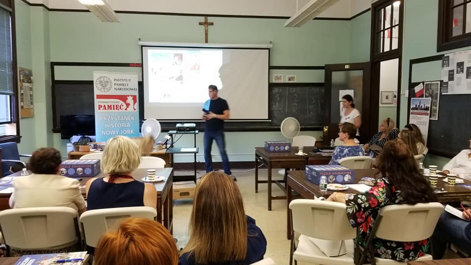 W sobotę, 28 września, w ramach Przystanku Historia, w Polskiej Szkole przy Konsulacie Generalnym RP w Nowym Jorku odbyły się warsztaty metodyczne dla nauczycieli szkół polonijnych. Poprowadzili je edukatorzy z Biura Edukacji Narodowej IPN z Łodzi. W pierwszej części warsztatów p. Grzegorz Nawrot przedstawił propozycję lekcji na podstawie komiksu „Waleczny Tadzio”. Jest to historia Tadeusza Jeziorowskiego, najmłodszego obrońcy Płocka z 1920 r. oraz kawalera Krzyża Walecznych. W drugiej części zajęć została zaprezentowana gra – puzzle „IV rozbiór Polski”. Nauczyciele w praktyce zapoznali się z grą oraz z możliwościami wykorzystania mapy Polski 1938 – 39 na lekcjach historii. Ostatnim etapem szkolenia, które poprowadziła p. Katarzyna Helik było zaprezentowanie gry „Miś Wojtek”. Na zakończenie wszyscy nauczyciele biorący udział w warsztatach otrzymali pamiątkowe dyplomy. Łącznie w szkoleniu uczestniczyło 11 szkół ze stanów: Nowy Jork, New Jersey oraz Connecticut. Każda ze szkół otrzymała pakiet gier oraz pomocy edukacyjnych.